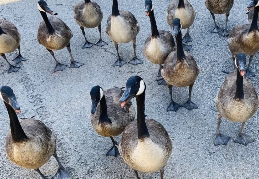 The birds are flocking back to the gardens. We especially love seeing our neighbor geese + Dave loves illustrating them.